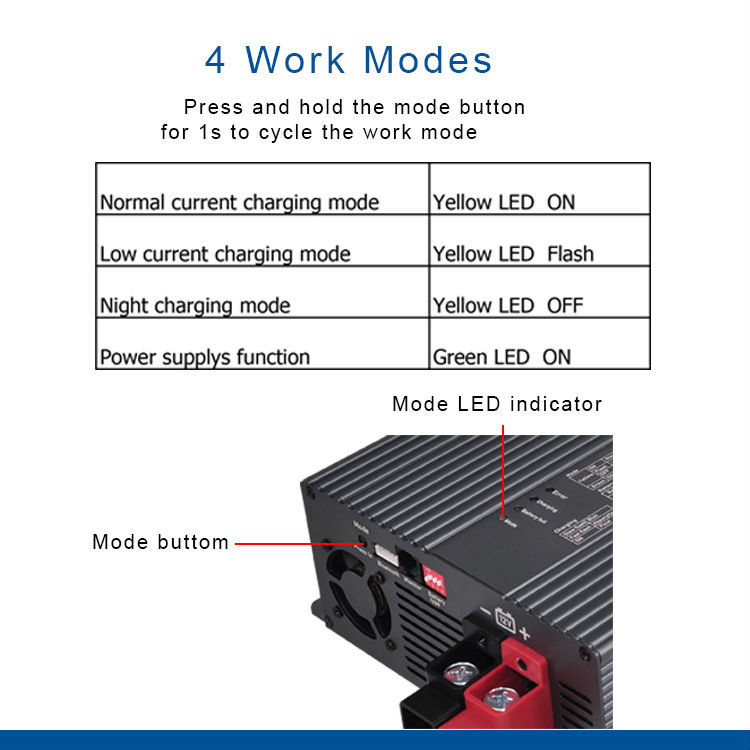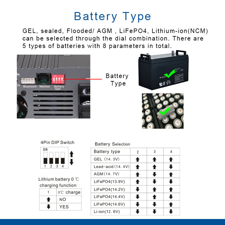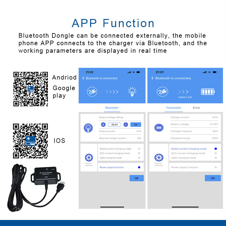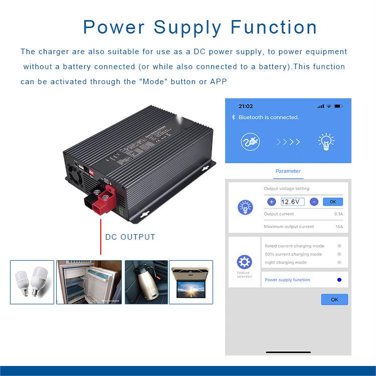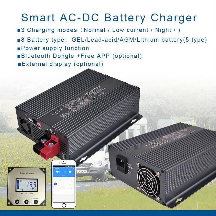Multi function intelligent battery charger, 8 battery options, 4 working modes, Power supply function, external display, mobile app display
