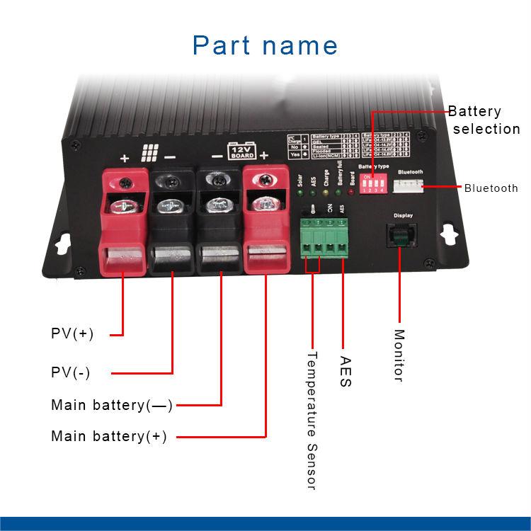 High voltage and high current MPPT solar charge controller with External Bluetooth(APP) and monitor