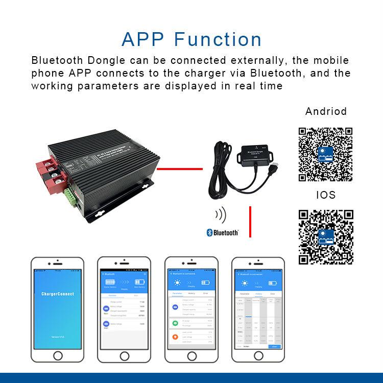 DC-DC+Solar Battery charger, with power supply interface for vehicle refrigerator , suitable for lead-acid and lithium batteries, Bluetooth, Free APP and Monitor,