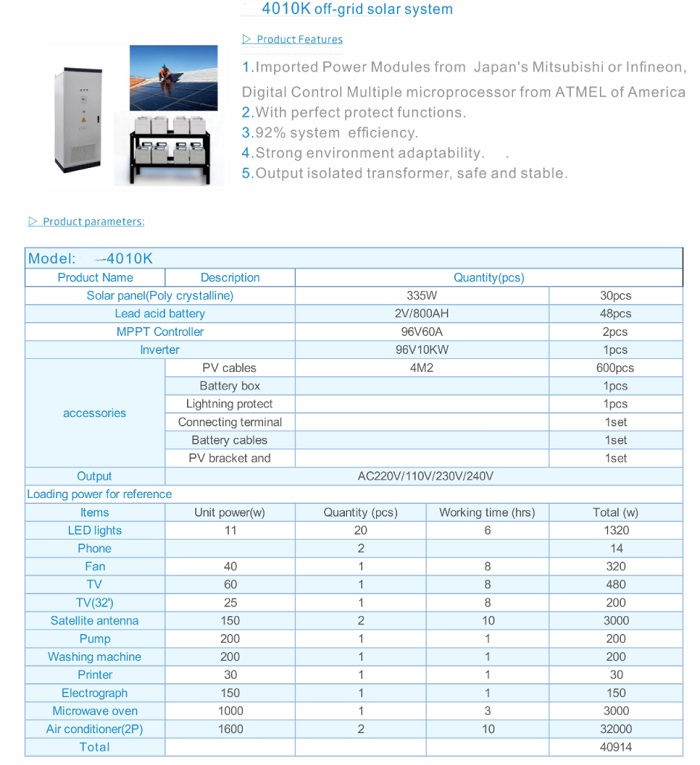 | Off-grid solar power generator Model: | SP-4010 | |
