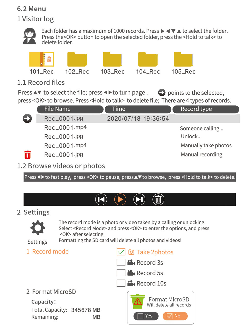 *Supports intercom, monitoring, Vidoe, and taking photo