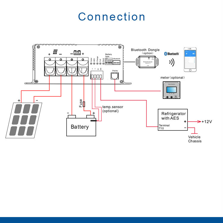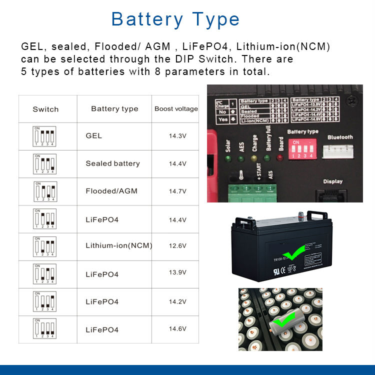 High voltage and high current MPPT solar charge controller with External Bluetooth(APP) and monitor